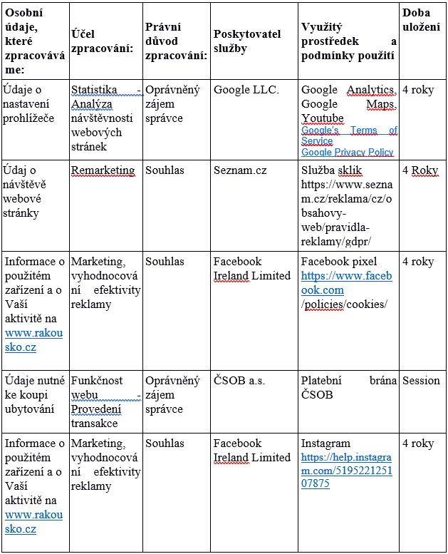 5. Jakým způsobem zpracováváme Vaše osobní údaje na www.rakousko.cz?