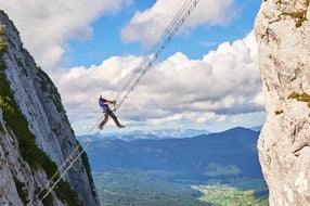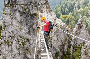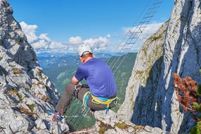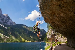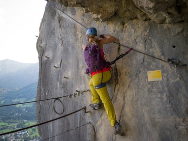 Na této C/D ferratě vybudované nad Gosauským jezerem v masivu Dachstein můžete skvěle otestovat nejen svou technickou zdatnost, ale i vytrvalost. Ve stěně podle zalidněnosti můžete strávit i více než 3 hodiny! Je rozdělena na 4 etapy a po každé z nich lze z cesty “uhnout”, pokud by jste se necítili na další postup. Nástup si určitě zkraťte lanovkou, jinak vás čeká 2 hodinový výšlap od parkoviště s převýšením 600m. Od lanovky k prvnímu cvaknutí na lano to je jen 20 minut.