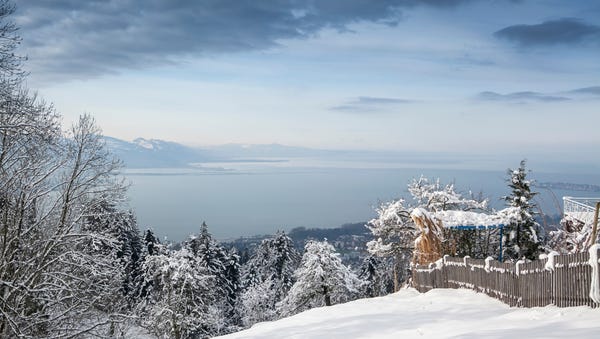 Kouzelná zimní krajina. Navštivte Husovu Kostici, Bregenz a další historické místa.
